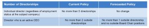 ― Impact on ISS Policy – Potential Modification to Policy: The table below shows the current and forecasted ISS policies on overboarding given investor sentiment: