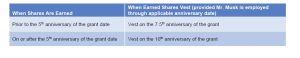 In addition to meeting market value and operational milestones, Mr. Musk is required to have developed a succession plan to earn shares underlying the 11th and 12th tranches.