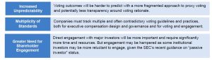 This changing landscape will likely increase the diversity of shareholder voting practices and make it more challenging for companies to anticipate and navigate say on pay voting.